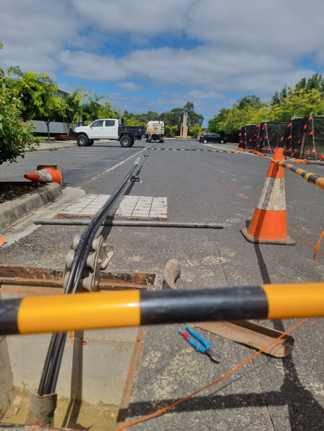 Our role is to set up the pull correctly, guide the cable through each pit using rollers and alignment tools, and control the tension from the winch so the cable moves smoothly through the entire run.